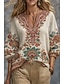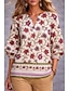 Damen Bluse Druck Blumen Grafik Bohemien Vintage Täglich Dreiviertelarm V Ausschnitt Normale Oberteile Täglich Ferien Urlaubskleidung Weiß Rosa Orange Grün Sommer Frühling Herbst