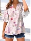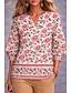 Damen Freizeithemd Bluse Druck Blumen Grafik Elegant Urlaub Stilvoll Dreiviertelarm V Ausschnitt Normale Oberteile Arbeit Strand Ferien Rosa Grün Khaki Sommer Frühling