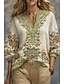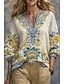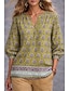 Damen Hemd Boho-Hemd Bluse Druck Blumen Grafik Vintage Täglich Stilvoll Langarm V Ausschnitt Normale Oberteile Täglich Ferien Blau Gelb Rosa Purpur Khaki Sommer Frühling