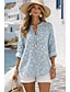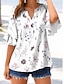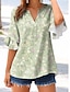 Damen Freizeithemd Bluse Druck Blumen Grafik Elegant Urlaub Stilvoll Dreiviertelarm V Ausschnitt Normale Oberteile Arbeit Strand Ferien Blau Grün Khaki Sommer Frühling Herbst Winter