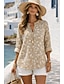 Damen Hemd Boho-Hemd Kunstbaumwollleinen Knöpfe Druck Blumen Bohemien Aktiv Lässig Langarm Hemdkragen Normale Oberteile Täglich Ferien Beige Frühling Herbst
