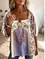 Retro-Bluse für Damen Geschichtete Rüsche Ärmel Tops 3D Druck Vintage Floral Grafik Täglich Stylisch Lässig 3/4 Länge Ärmel Regelmäßige Tops Tägliche Urlaubsreise Druck Lila Grün Beige