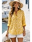 Damen Bluse Knöpfe Druck Blumen Grafik Täglich Stilvoll Basic Halbarm Quadrathals Lange Oberteile Täglich Gelb Grün Beige Leicht Blau Sommer Frühling