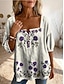 Damen Bluse Druck Blumen Grafik Bohemien Täglich Stilvoll Halbarm Quadrathals Normale Oberteile Täglich Violett Purpur Beige Sommer Frühling