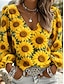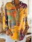 Damen Hemd Tunika Druck Grafik Blume Bohemien Vintage Täglich Langarm V Ausschnitt Normale Oberteile Täglich Ferien Gelb Khaki Sommer Frühling Herbst