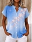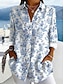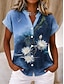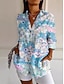 Damen Hemd Durchgeknöpft Hemd Freizeithemd Strandhemd Knöpfe Druck Blumen Elegant Stilvoll Lässig Langarm Hemdkragen Normale Oberteile Täglich Arbeit Ferien Blau Sommer Frühling Herbst