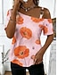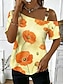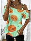 Damen T Shirt T-Shirt Druck Blumen Grafik Mode Klassisch Lässig Kurzarm Ein-Schulter Normale Oberteile Täglich Ausgehen Wochenende Gelb Rosa Grün Sommer Frühling