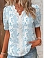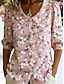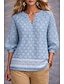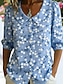 Damen Freizeithemd Bluse Druck Blumen Grafik Elegant Urlaub Stilvoll Dreiviertelarm V Ausschnitt Normale Oberteile Arbeit Strand Ferien Blau Rosa Grün Sommer Frühling Herbst Winter