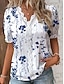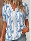 Damen Bluse Spitze Patchwork Druck Blumen Stilvoll Lässig Kurzarm V Ausschnitt Normale Oberteile Täglich Blau Weiß Himmelblau Orange Sommer Frühling