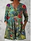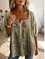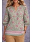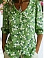 Damen Bluse Druck Blumen Urlaub Täglich Lässig Dreiviertelarm V Ausschnitt Normale Oberteile Täglich Ferien Ausgehen Grün Sommer Frühling Herbst