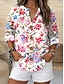 Damenbluse Knopfverschluss Floral Grafik Elegant Stilvoll Lässig 3/4 Ärmel V-Ausschnitt Regelmäßige Oberteile Täglicher Urlaub Ausgehen Druck Weiß Pink Blau Sommer Frühling