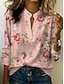 Damen Hemd Durchgeknöpft Hemd Freizeithemd Strandhemd Knöpfe Druck Blumen Elegant Stilvoll Lässig Langarm Hemdkragen Normale Oberteile Täglich Arbeit Ferien Rosa Sommer Frühling Herbst