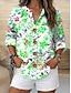 St. Patricks Day Damen Bluse Knöpfe Druck Grafik Kleeblatt Vintage Stilvoll Lässig Langarm Hemdkragen Normale Oberteile Täglich Arbeit Schwarz Weiß Hellgrün Grün Sommer Frühling Winter