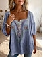 Damen Hemd Kunstbaumwollleinen Knöpfe Druck Blumen Täglich Lässig Langarm V Ausschnitt Normale Oberteile Täglich Ferien Blau Frühling Herbst