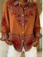 Damen Hemd Durchgeknöpft Hemd Freizeithemd Bluse Knöpfe Blumen Grafik Stilvoll Klassisch Modern Langarm Hemdkragen Normale Oberteile Täglich Ferien Ausgehen Braun Sommer Frühling