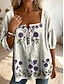 Damen Bluse Druck Blumen Grafik Paisley-Muster Täglich Stilvoll Basic Halbarm Quadrathals Normale Oberteile Täglich Blau Purpur Grün Sommer Frühling