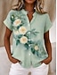 Damen Hemd Durchgeknöpft Hemd Sommeroberteile Knöpfe Druck Blumen Grafik Vintage Stilvoll Modern Kurzarm Hemdkragen Lange Oberteile Täglich Hellgrün Rosa Violett Sommer Frühling Herbst