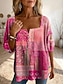 Damen Hemd Druck Blumen Grafik Vintage Stilvoll Lässig Dreiviertelarm Rundhalsausschnitt Normale Oberteile Täglich Ferien Urlaubskleidung Blau Rote Purpur Grün Sommer Frühling