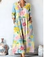 Damen Maxikleid Sommerkleid T-Shirt-Kleid A Linie Kleid Urlaub Lässig Strand Ausgehen Lässiger Schnitt Blumen Grafik Kurzarm V Ausschnitt Gelb Rote Grün Sommer Frühling