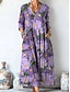 Damen Baumwolle Leinen Midi Kleid Freizeitkleid Kleid Shift Kleid Midi Kleid Druck Casual Alltag Urlaub V-Ausschnitt Halbarm Sommer Frühling Weiß Lila Blatt