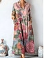 Damen Knielanges Kleid Freizeitkleid Urlaub Vintage Lässig Ferien Normale Passform Blumen Grafik Langarm V Ausschnitt Blau Purpur Orange Grün Sommer Frühling