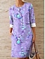 Damen Midikleid Freizeitkleid Druckkleid Mode Modern Täglich Strand Wochenende Normale Passform Blumen Dreiviertelarm Rundhalsausschnitt Gelb Purpur Grau Sommer Frühling Herbst