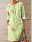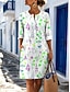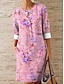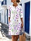 Damen Minikleid Shiftkleid T-Shirt-Kleid Sommerkleid Lässig Täglich Strand Ferien Normale Passform Blumen Grafik Dreiviertelarm V Ausschnitt Blau Rosa Purpur Grün Sommer Frühling
