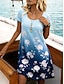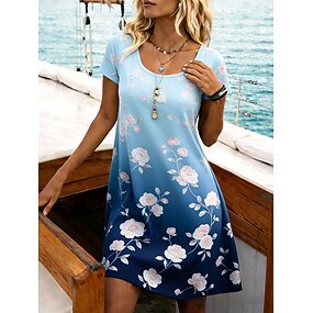 Damen Minikleid Sommerkleid T-Shirt-Kleid A Linie Kleid Urlaub Lässig Täglich Strand Ferien Normale Passform Ombre Blumen Grafik Kurzarm Rundhalsausschnitt Blau Purpur Orange Sommer Frühling