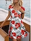 Damen Minikleid Sommerkleid T-Shirt-Kleid A Linie Kleid Urlaub Lässig Täglich Strand Ferien Normale Passform Blumen Grafik Kurzarm Rundhalsausschnitt Blau Gelb Rosa Rote Sommer Frühling