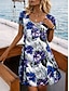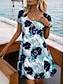 Damen Minikleid Sommerkleid A Linie Kleid Trägerloses Kleid Urlaub Lässig Strand Ausgehen Normale Passform Blumen Grafik Ärmellos U-Ausschnitt Blau Rote Purpur Grün Sommer Frühling