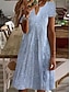 Damen Knielanges Kleid Spitzenkleid Freizeitkleid Sommerkleid Elegant Mode Täglich Strand Ferien Normale Passform Blumen Kurzarm V Ausschnitt Blau Sommer Frühling