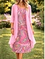 Damen Kleid-Set A Linie Kleid Elegant Urlaub Blumen Grafik Geschichtet Druck Minikleid Halbarm Rundhalsausschnitt Täglich Rosa Sommer Frühling Normale Passform