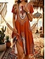 Damen Langes Kleid Maxikleid Freizeitkleid Trägerkleid Sommerkleid afrikanisch Täglich Strand Ferien Normale Passform Geometrisch Stammes Ärmellos V Ausschnitt Rote Khaki Sommer