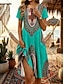 Damen kleid lang Casual kleid A Linie Kleid Sommerkleid Boho-Kleid Elegant Hawaiianisch Stilvoll Urlaub Täglich Verabredung Regular Fit Blumen Kurzarm V Ausschnitt Grün Sommer