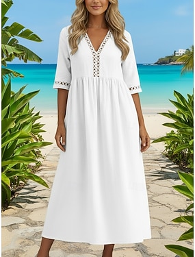 Damen Midikleid Baumwoll Mischung Shiftkleid Hemdblusenkleid Weißes Kleid Basic Modern Täglich Wochenende Lässiger Schnitt Einfach Halbarm Rundhalsausschnitt Weiß Sommer Frühling