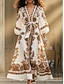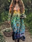 Damen Maxikleid Boho-Kleid Vintage-Kleid Freizeitkleid Vintage Täglich Outdoor Urlaub Normale Passform Grafik Langarm V Ausschnitt Grün Frühling Herbst