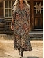 Damen Boho Kleid Blumen V-Ausschnitt Maxikleid Vintage Kleid Print Kleid Mode Modern Sommer Frühling