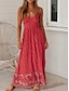 Damen Maxikleid Boho-Kleid Freizeitkleid Unterkleid Elegant Mode Modern Outdoor Urlaub Ausgehen Normale Passform Blumen Ärmellos V Ausschnitt Schwarz Rote Beige Sommer Frühling