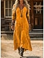 Damen Maxikleid Vintage-Kleid Freizeitkleid Vintage Täglich Outdoor Urlaub Normale Passform Karomuster Langarm V Ausschnitt Orange Frühling Herbst