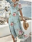 Damen Maxikleid Boho-Kleid Freizeitkleid A Linie Kleid Druckkleid Vintage Outdoor Urlaub Wochenende Lässiger Schnitt Blumen Grafik Kurzarm V Ausschnitt Blau Sommer Frühling