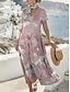 Damen Maxikleid Boho-Kleid Freizeitkleid A Linie Kleid Druckkleid Vintage Outdoor Urlaub Wochenende Lässiger Schnitt Blumen Grafik Kurzarm V Ausschnitt Rosa Sommer Frühling