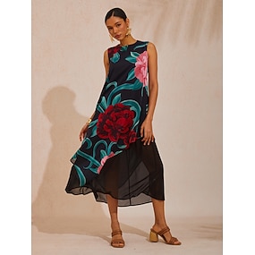 Damen Maxikleid Boho-Kleid Sommerkleid Freizeitkleid Ethnokleid Elegant Bohemien Urlaub Strand Ferien Date Lässiger Schnitt Blumen Grafik Ärmellos V Ausschnitt Schwarz Rote Orange Sommer Frühling