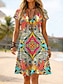 Damen Boho Kleid Western Kleid Vintage Mini Kleid A-Linie Kleid Off-The-Shoulder Kleid Urlaub Party Lässig Party Ausgehen Standard Fit Grafik Tribal Ärmellos U-Ausschnitt Dunkelbraun Blau Grün