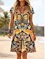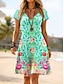 Damen Minikleid Boho-Kleid Vintage-Kleid Freizeitkleid Elegant Mode Modern Outdoor Urlaub Ausgehen Normale Passform Blumen Kurzarm V Ausschnitt Weiß Grün Leicht Blau Sommer Frühling