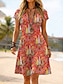Damen Knielanges Kleid Sommerkleid T-Shirt-Kleid A Linie Kleid Urlaub Lässig Boho Strand Normale Passform Blumen Grafik Abstrakt Kurzarm V Ausschnitt Blau Rote Orange Grün Sommer Frühling