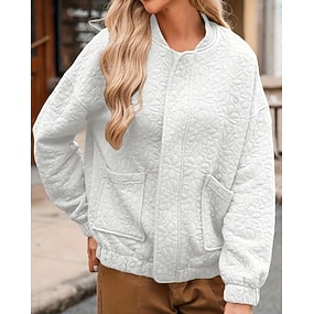 Damen Jacke Warm Bequem Reißverschluss Tasche Mode Einfach Straße Wochenende Reisverschluss Regulär Rundhalsausschnitt Normale Passform Langarm Oberbekleidung Marineblau Weiß Wein Herbst Winter