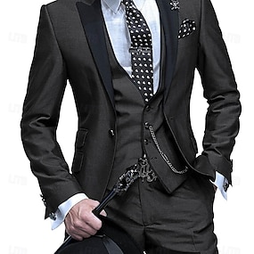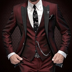Herren Business-Anzüge Lässig Semi-Formal Schwarz Burgunderrot Frühling, Herbst, Winter, Sommer Anzug Steigendes Revers Täglich Geschäftlich Einfarbig Figurbetonter Schnitt 3-teilig Einreihige