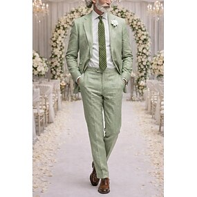 Herren Smokings Leinenanzüge Party Hochzeit Himmelblau Salbei Frühling & Sommer Anzug Gekerbtes Revers Mode Leicht Einfarbig Figurbetonter Schnitt 2-teilig Einreihige Zwei-Knopf-Jacke