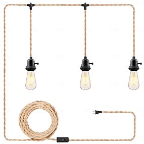 15 Fuß langes Kabel mit Stecker für eine Lampe, 23 Fuß langes Kabel mit Stecker für eine dreiflammige Pendelleuchte, Hängeleuchten mit Steckerkabel, Hängeleuchten-Set aus Hanfseil mit 2-Wege-Schalter,