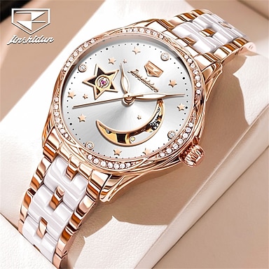 OLEVS Damen mechanische Uhr Kreative minimalistische modische lässige Analog Armbanduhr Automatische Selbstaufzug leuchtender Kalender wasserdichte Keramik Uhr für Frauen Muttertagsgeschenk Damen